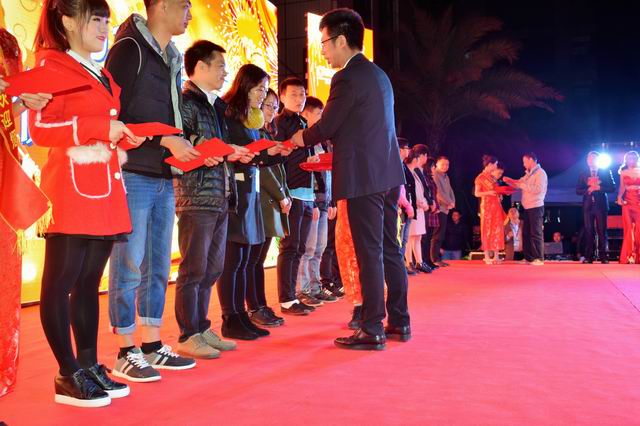 为了感谢同事们的辛勤工作,公司评选出各部门的优秀员工,总经理陈泽波及常务副总陈晓斌为优秀员工同事颁发证书及红包。